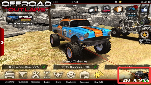 1进入游戏后,点击屏幕右下角的“play”按钮即可开始越野。
