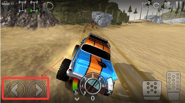 3、右下角右边的按键是油门,左边的则是刹车。