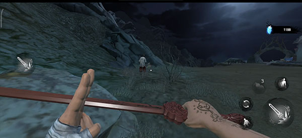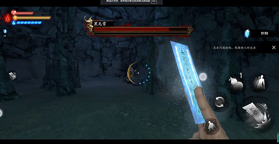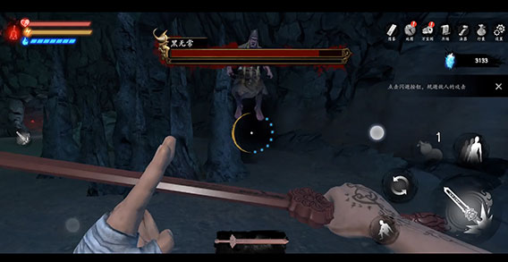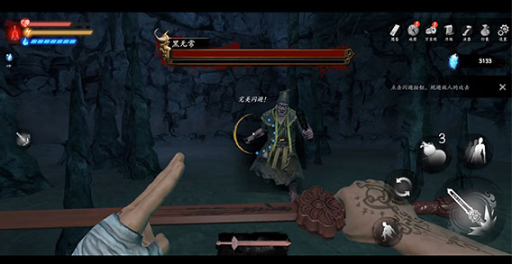 这里有三个小怪比较好打,小怪在发现自己时会有一段空闲时间,在这段时间内使用桃木剑进行攻击,如果没打死 边打边退,看到小怪抬手攻击时闪避即可