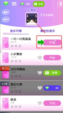 2、在音乐列表中选择想要弹奏的歌曲,点击开始。