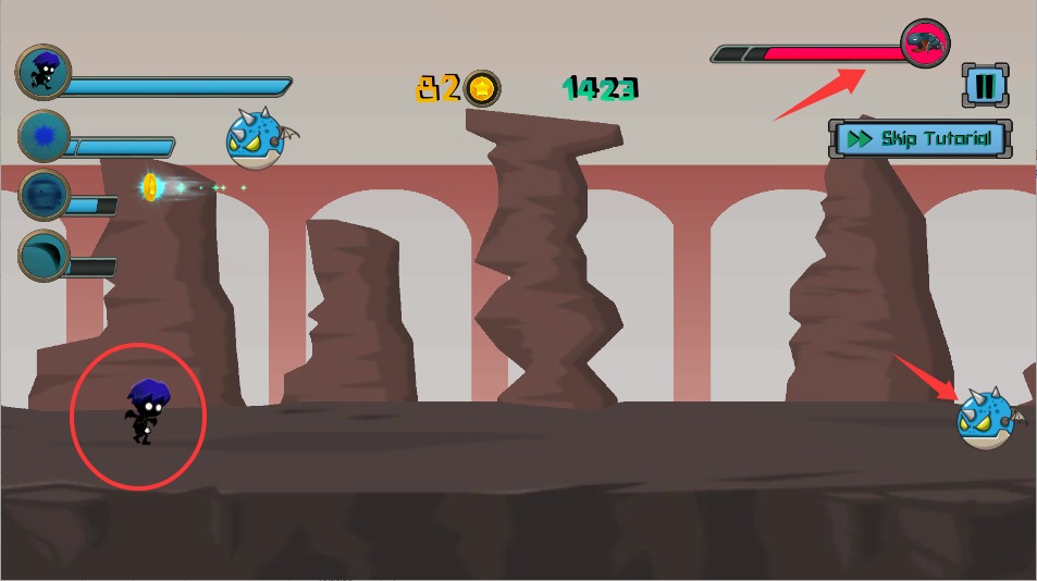 3、操作时左手控制跳跃键躲避障碍,右手操控射击键发动攻击,灵活组合移动与输出完成关卡挑战。