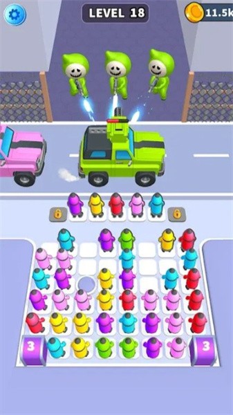 1、核心消除机制,通过滑动屏幕匹配三个以上同色子弹,将其填充至武器系统。特殊组合可以触发连锁反应。