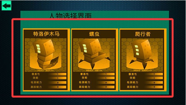 2、接着挑选你的黑客病毒角色,每个角色都具备不同的覆盖范围、性能、检测能力和追踪能力。