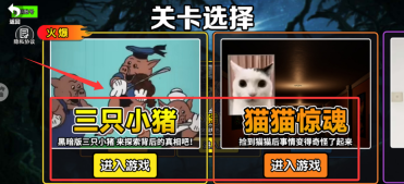2、选择"三只小猪"或"猫猫惊魂"主题关卡,每个场景都暗藏毛骨悚然的隐藏剧情。