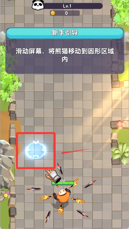1、开始游戏后,滑动屏幕将熊猫移动到圆形区域内。