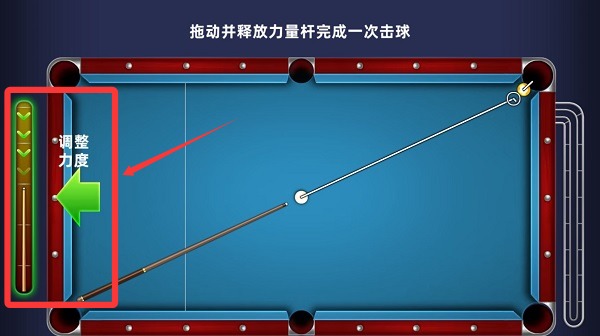 2、在箭头指向的左侧,是力度的调节,向下拖动可以蓄力,松开手指即可击球。