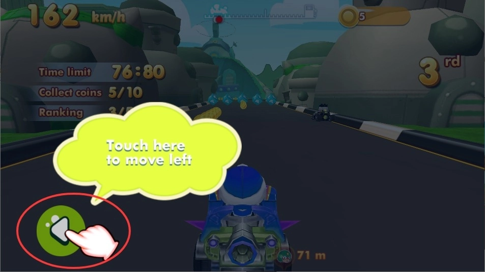 1、轻触左侧屏幕可以使赛车向左转弯,在遇到急弯时需要提前点击以保持稳定,确保过弯时不偏离赛道。