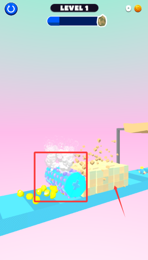 2、点击红框蓝色装置,收集黄色圆球完成关卡。