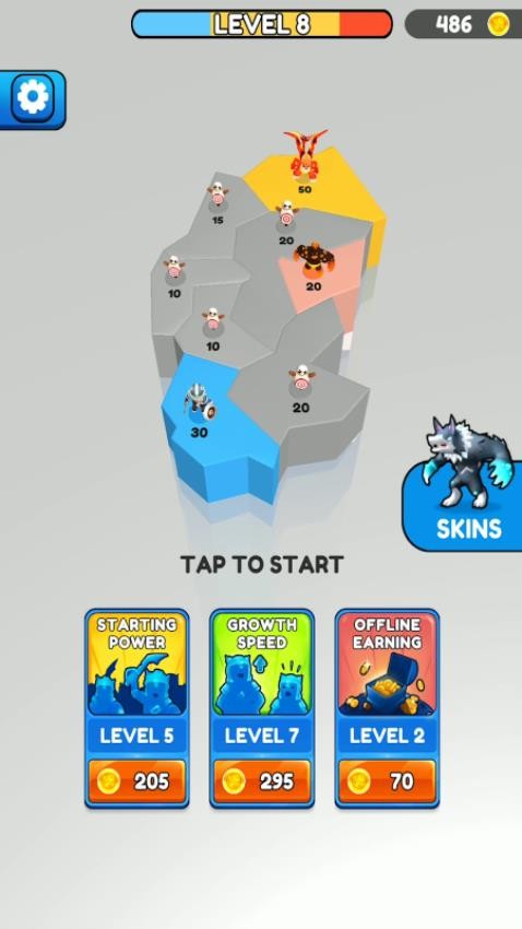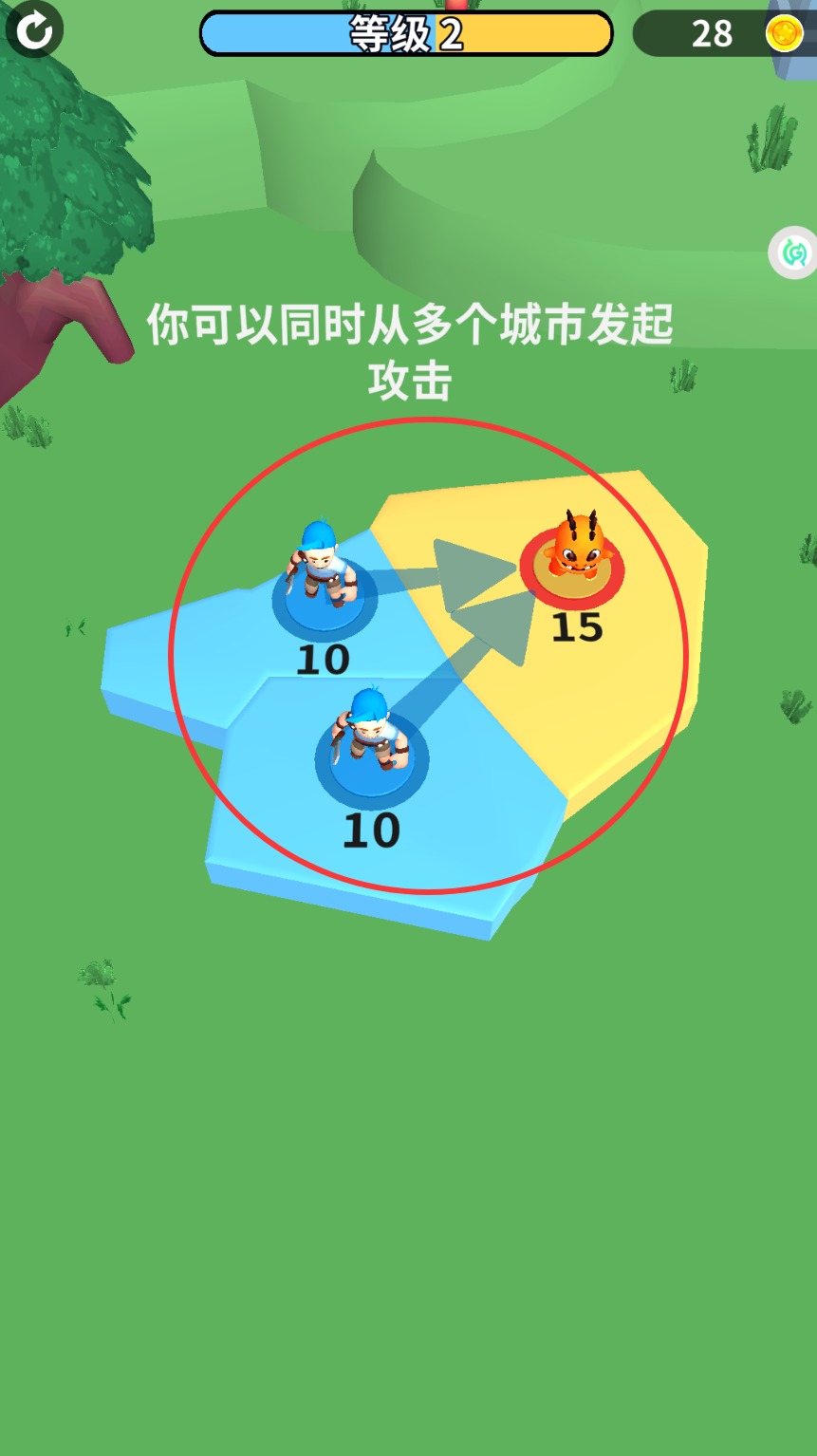 2、新颖的领地争夺机制,通过控制不同颜色的区域来扩大影响力,简洁明了的界面让战略部署清晰可见。