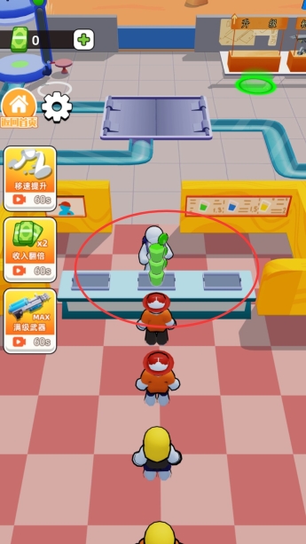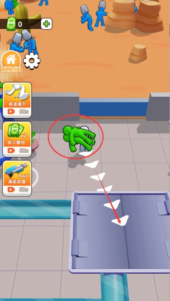 1、僵尸捕捉环节,使用升级后的装备在关卡中捕捉僵尸,不同等级的枪械对应不同体型的捕获对象。