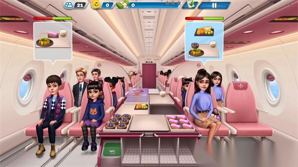 5、游戏以关卡形式进行,每通过一关就能得到金币奖励,这些金币可以用来升级客舱内的设施。升级设施不仅能增加收入,还能减少餐点的制作时间,提高整体效率。