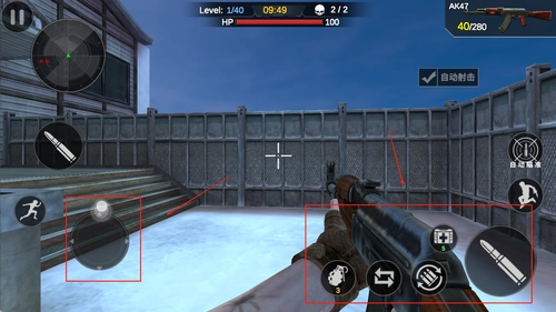 2. 移动控制区域位于左侧,瞄准与射击按钮在右侧,弹药数量和生命值显示于上方,方便了解当前状态。