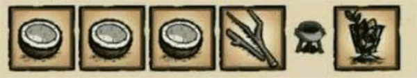 材料廉价的回血食物,3个水果加一个树枝就可以做出来不一定用椰子,也可以用香蕉,石榴,西瓜,但是偏偏浆果就是不行,没食物了可以吃这个凑合着过,海难食物大都是偏回血的。