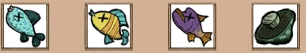 材料可以是4只鱼,或者四只帽贝,或者三条鱼加一个树枝都可以,没有肉有鱼的时候可以做来吃,不过要是有海带做加州卷更划算些。