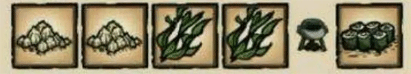 主材料是两个海带,然后剩下的有一个鱼类,加一个树枝就可以做出来,图片就不找那么多了,鱼多可以两个鱼加两个海带就行。