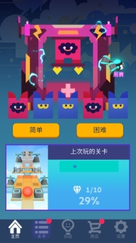 1、在首关“云”的场景里,没有特别难拐的弯,也没有过多障碍物。只需沿着直线带球在地面奔跑,注意别碰到两侧凸起的方块,这样就比较容易达成满钻通关。而且这个图景只要获得一星就算达标。