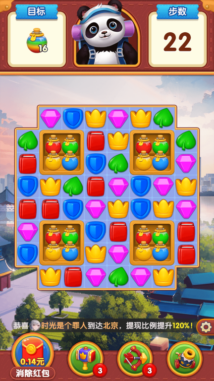 1、在"熊猫爱旅行"中,你不仅可以愉快消除,还能轻松赚取红包!