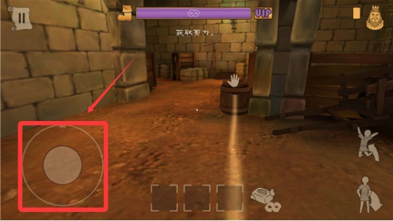 3、游戏开始后,通过滑动左下角的摇杆来控制角色移动。我们需要依据路途中的提示来寻找所需的道具,也可以选择增加难度自行探索。