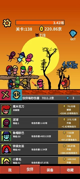 5、在游戏进程推进的过程中,我们能够逐步解锁具备不同战斗属性的伙伴,并且还能对他们进行升级。