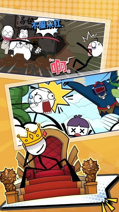 1、搞怪幽默画风:游戏运用了夸张逗趣的美术风格,火柴人造型滑稽有趣,结合荒诞不经的场景设计,让人捧腹大笑。