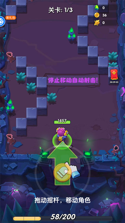 1、移动摇杆可以控制人物的前进方向。