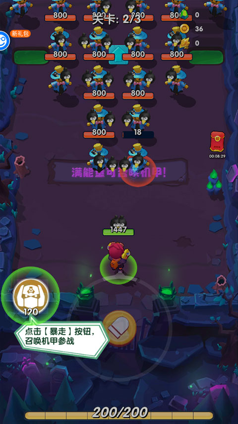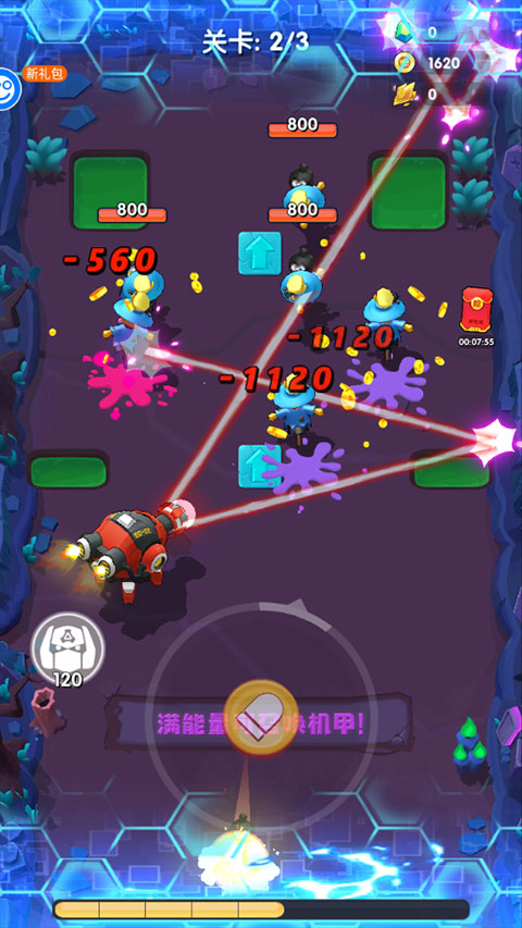 2、遇到敌人太多还可以召唤机甲进行战斗