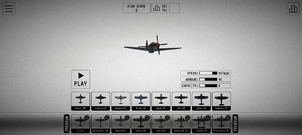 1、选择一款二战时的飞机型号,点击play开始游戏。