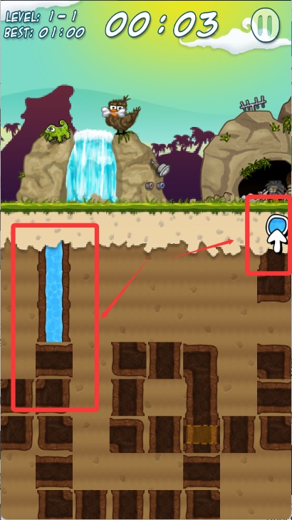 3、开始游戏后需要移动下方的通道使水流到达目的地。