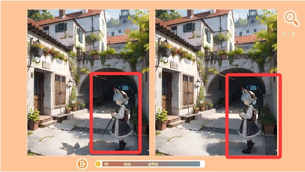 3、游戏开始后,请在这里找出真实图片与AI合成图片之间的差异,同时要注意下方的进度条。