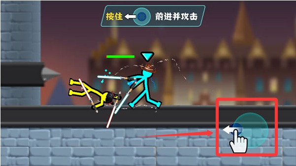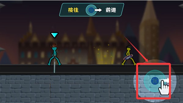 2、然后我们需要按住右下角摇杆,可以移动角色。