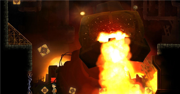 1、这场boss战相当简单,我们只需持续靠左行走,避免被履带推到右边的熔炉里。
