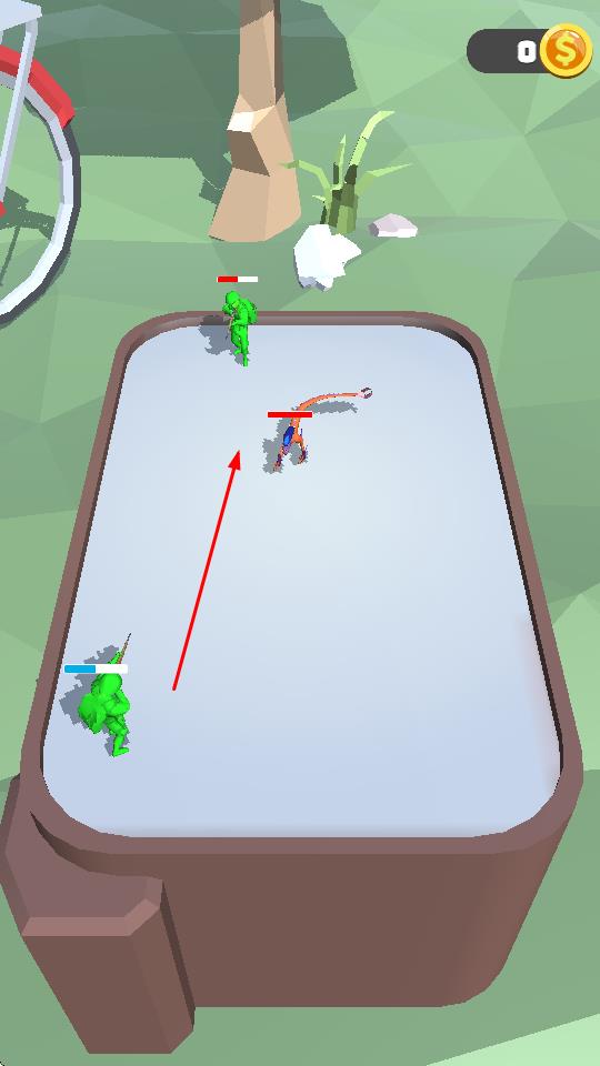 1、在战场拖动角色,沿红色箭头移动,靠近绿色敌人自动攻击,消耗血量击败对手。