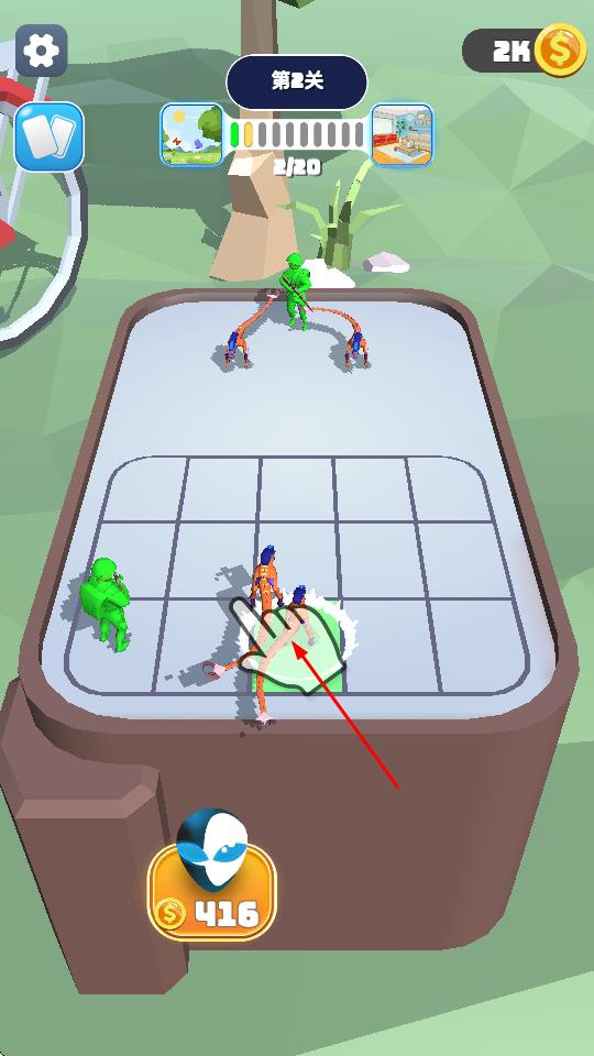 2、点击下方金币按钮(显示2、416等),消耗金币召唤新单位,放置在网格区域,增强战力。