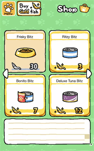 一、猫咪后院的商店:花银鱼干或者金鱼干来购买猫粮与玩具。