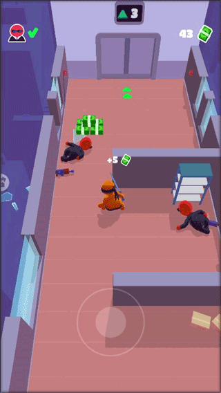 2、在移动的过程中可以从敌人的身后击杀它们并获得钞票。