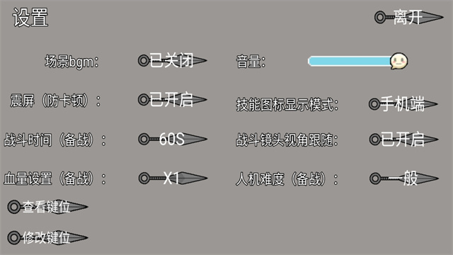 2、点击右上角设置按钮,玩家可调整游戏音量、键位等设置;