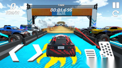 2、赛道操控:用虚拟方向键转向,右侧按键控刹车/加速,在特技赛道竞速。