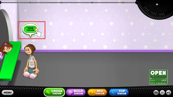1、打开游戏,在点餐台处,点击顾客上方的【TAKEORDER】。