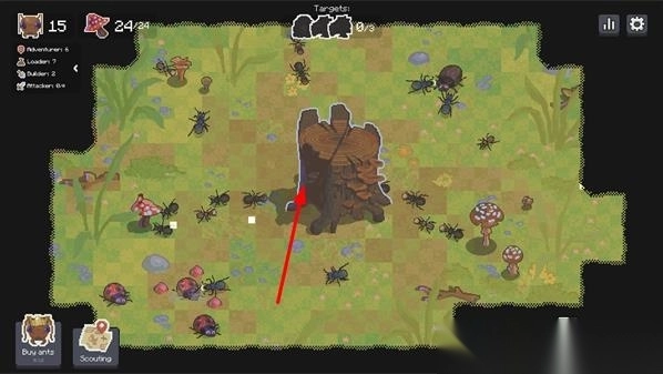 1刚开始游戏时,指挥蚁群在起始区域内移动,引导工蚁探索周围环境,搜寻分散的食物资源,为族群的生存打下物质基础。