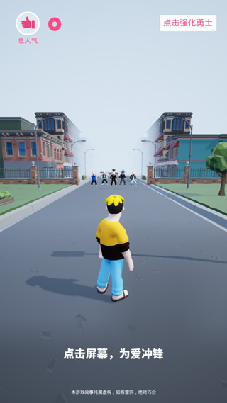 1. 启动《为爱冲锋的勇士》手游,轻点屏幕开启游戏。游戏伊始,玩家要操控角色凭借拳头击退5名迎面冲来的敌人。