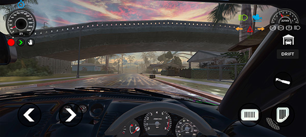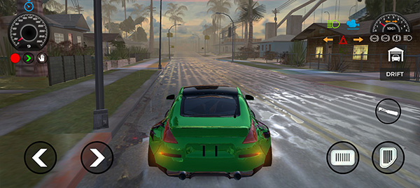 进入游戏后,你可以自由驾驶自己的车辆,左侧的两个按键用于控制方向,右下角的两个按键则分别负责刹车和加速。