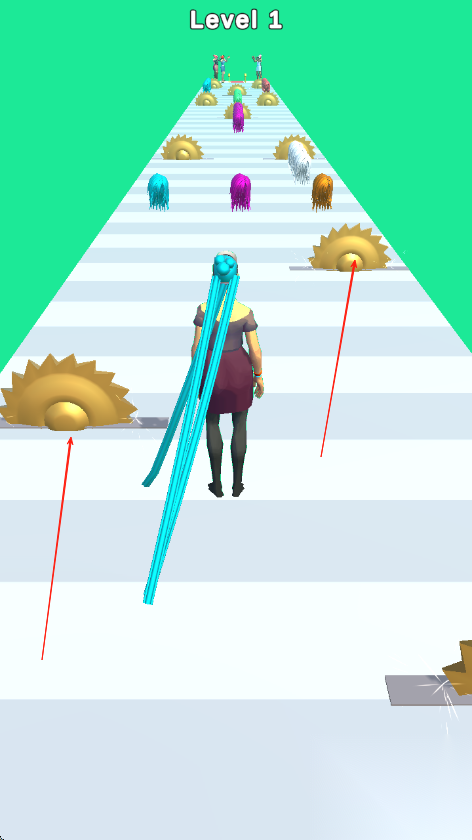 3、每当你成功到达一关的终点时,会根据你的头发长度和通关时间来获得积分。这些积分可以用来在竞技PK模式中与其他玩家进行对战,并解锁更多角色外观及主题赛道。