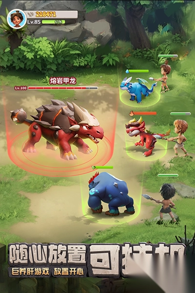 1、宠物收集养成:在原始大陆各处探索捕捉宠物,通过喂食、升级等操作提升属性,搭配宠物技能打造个性化战斗小队。