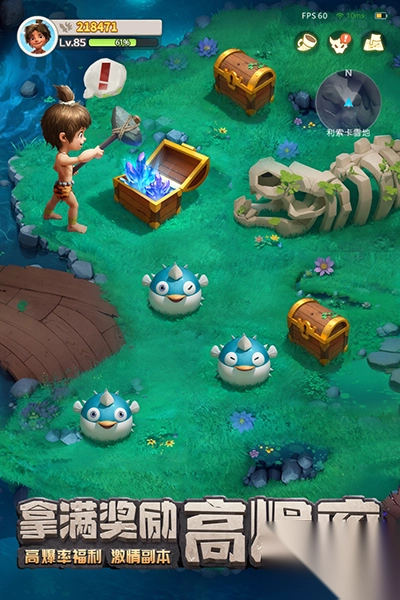 1、真实还原原始场景:采用3DPBR技术重现一万年前的部落景观,玩家可以手持石矛、身着兽皮探索古老的宝藏,沉浸在远古生活的体验中。