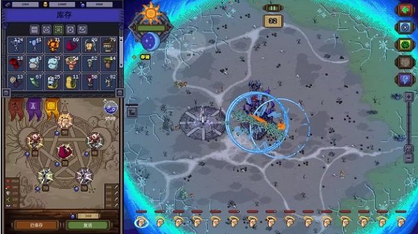 地图上巢穴清理完,亡灵自动回基地。留下15个以下亡灵,就能造最后回归部件准备通关。大约40秒自动清完通关刷出的怪物巢穴。