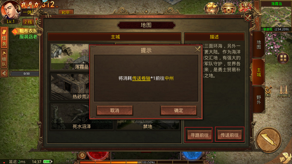 2、选择主城后,点击你想去的主城,有两种前往方式:寻路前往,传送前往