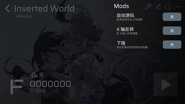 点击右上角扳手图标会在屏幕右边显示3个模组,分别为自动游玩(Autoplay)、X轴翻转(左右镜像)、下隐。