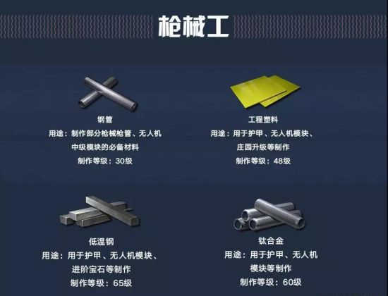 钢管制作、工程塑料、低温钢、枪械福至心灵。