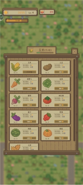 2、在游戏里,你能够购买极为丰富多样的农作物来开展种植。