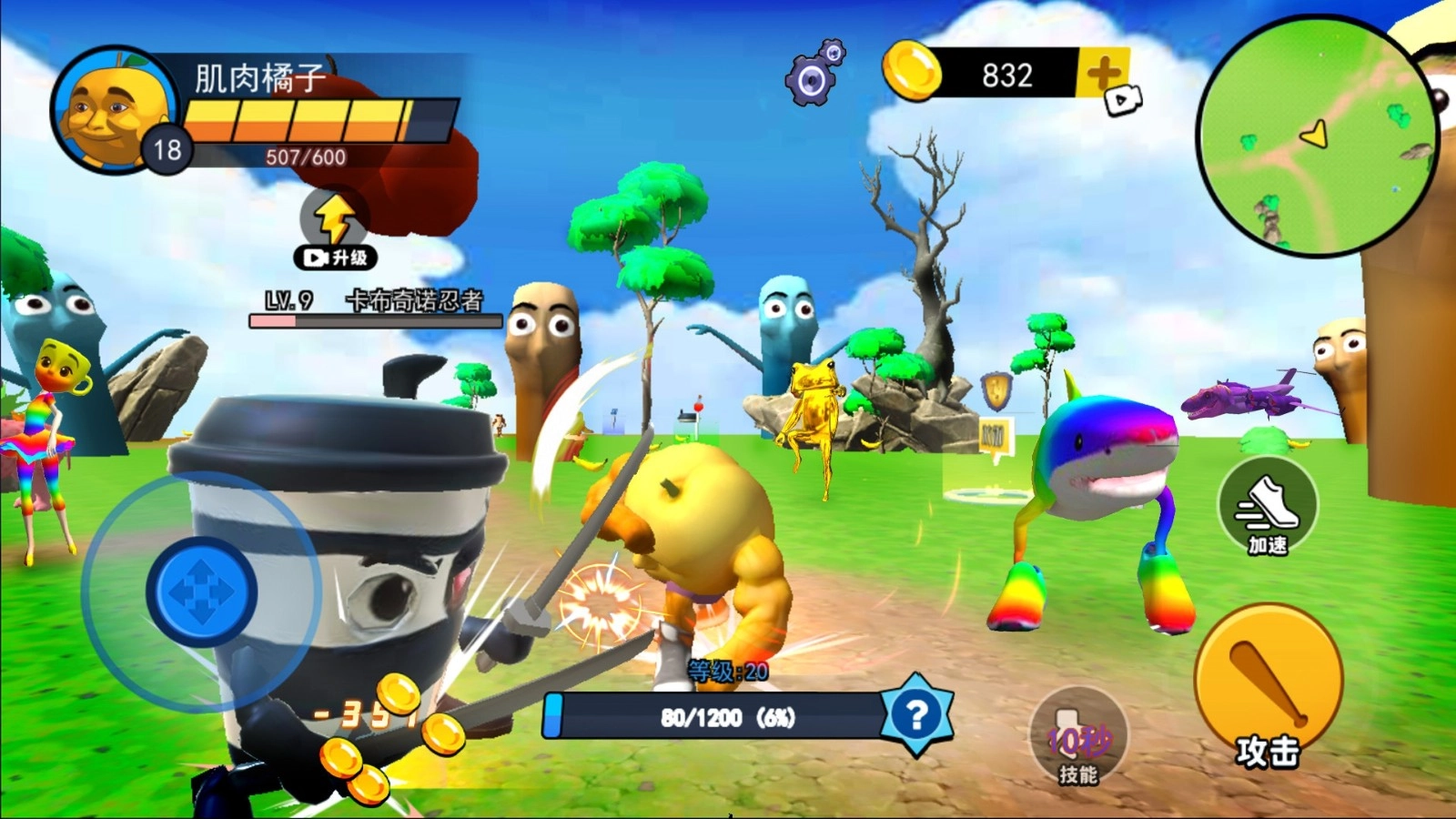 1玩家所扮演的“木棍人宝宝”需要通过不断吃食物来进化,解锁更强力的形态,最终变成顶级掠食者——黄金鲨鱼。